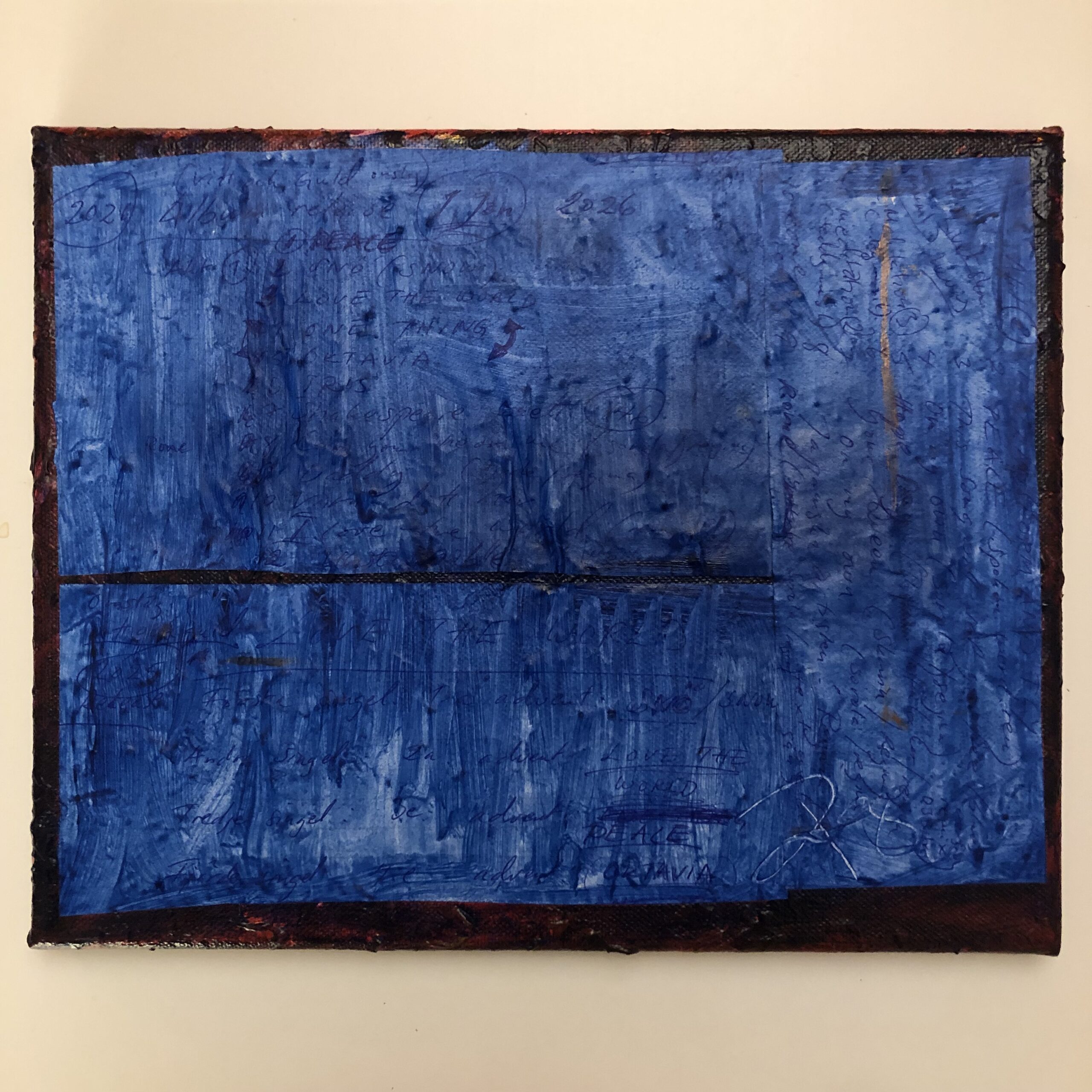Acrylic, ballpoint pen, paper and glue on canvas